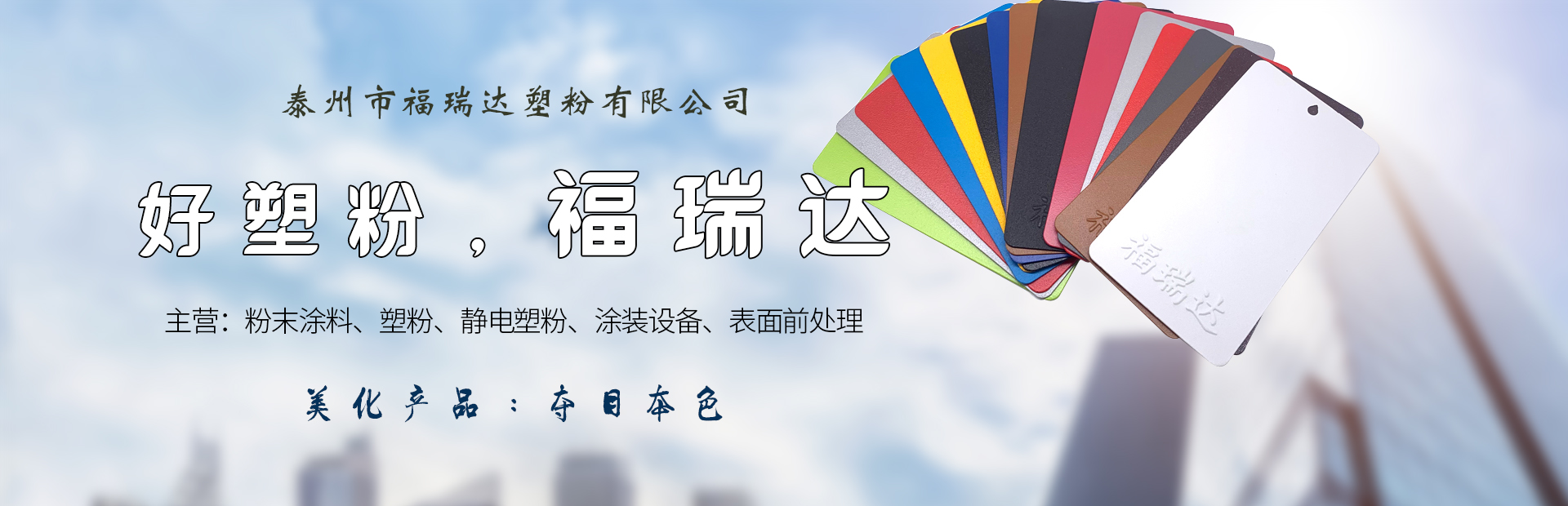泰州市福瑞达塑粉有限公司始创于2008年,是集粉末涂料,塑粉,喷塑设备,表面前处理研发生产的专业企业。主要产品有:静电塑粉,静电粉末涂料,粉末涂料,涂装设备,前...